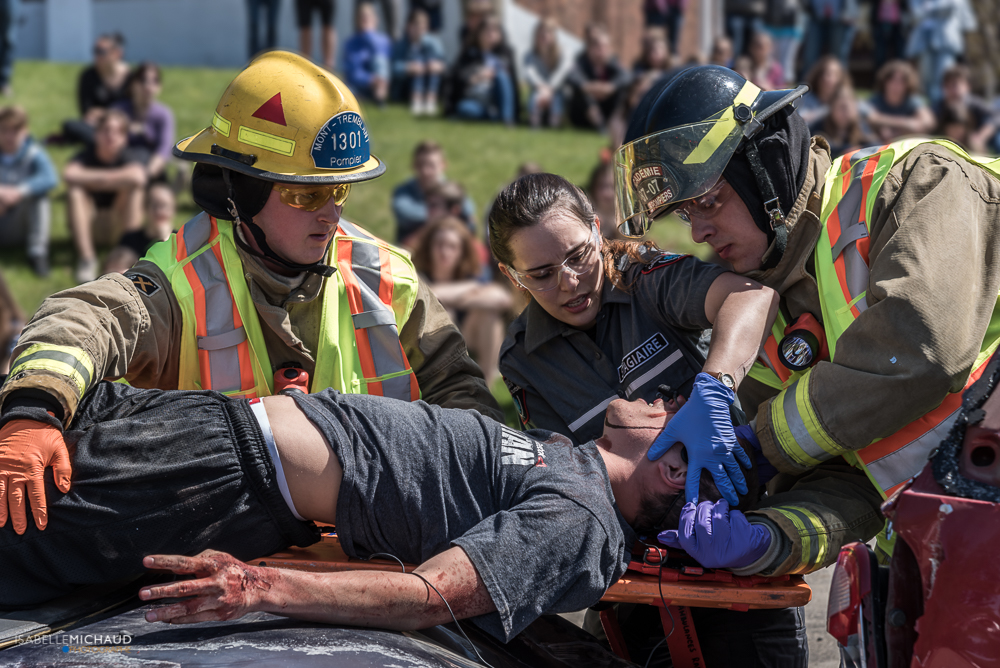 Pour une 4e année consécutive, le Service de police de la Ville de Mont-Tremblant, en collaboration avec l’ESCM et d’autres services d’urgence de la région, n’ont pas ménagé leurs efforts pour rendre plus que crédible la scène de l’accident, lors de laquelle une voiture, ayant à son bord six adolescents, emboutie une mini-fourgonnette conduite par une femme enceinte. Cette initiative, dirigée par l’agent aux relations communautaires Éric Cadotte du Service de police, vise à sensibiliser les adolescents aux conséquences sociales et légales de conduire un véhicule en ayant les facultés affaiblies par la consommation de cannabis. Cela, à l’aube de la période de bal de finissants qui approche et de la légalisation prochaine de la marijuana qui risque d’apporter une certaine banalisation quant à sa consommation.